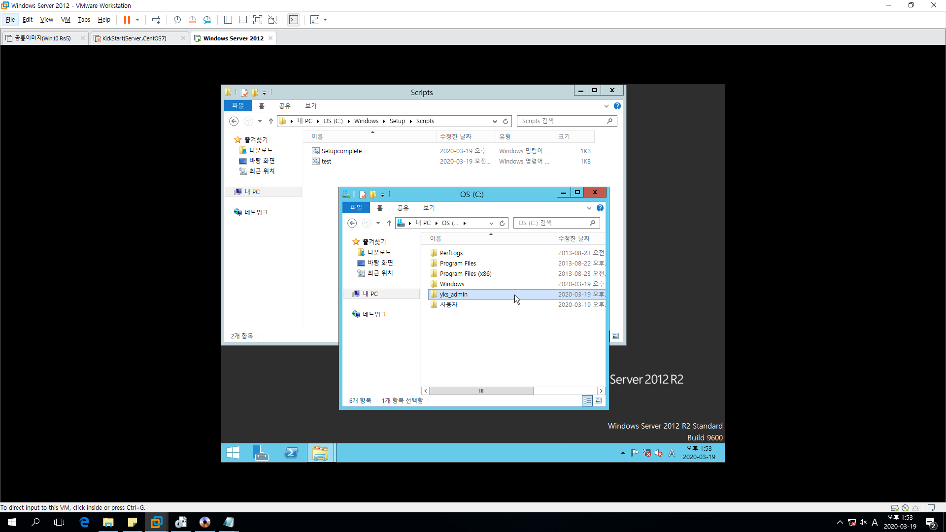 (메인 스크립트) SetupComplete.cmd (추가 호출) NTP_Config.cmd 서버 NTP 설정 (추가 호출) IPSEC_Cofnig.cmd 서버 접근제어 구성 (추가 호출) Security_Check.cmd 서버 보안취약점 조치 및 점검 이제부터는 실제 구성하는 과정을 보도록 하자. 메인 스크립트와 동일한 경로에 넣어주고 해당 스크립트를 호출하는 구문을 SetupComplete.cmd에 넣어주면 다른 스크립트들이 순차적으로 실행된다.